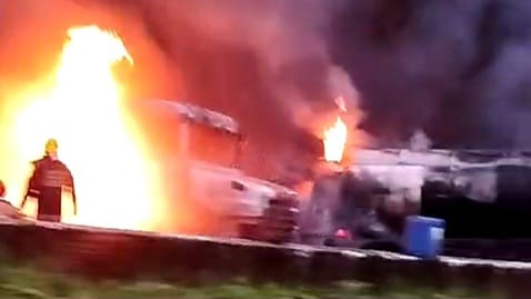 Apesar do susto, segundo a PRF, não há vítimas fatais, porém há uma pessoa com ferimento grave (100% do corpo queimado), que foi encaminhada ao Hospital de Trauma.