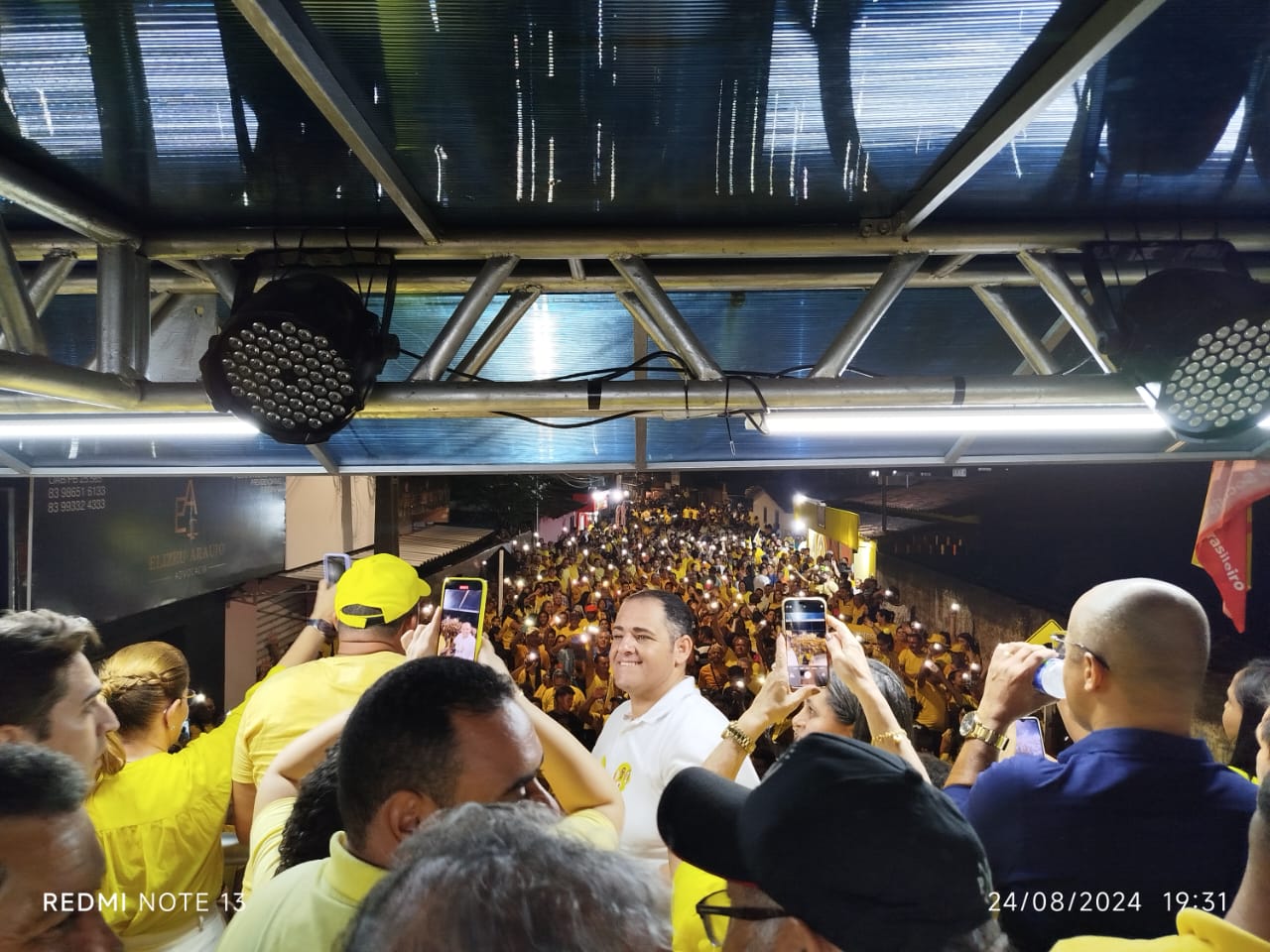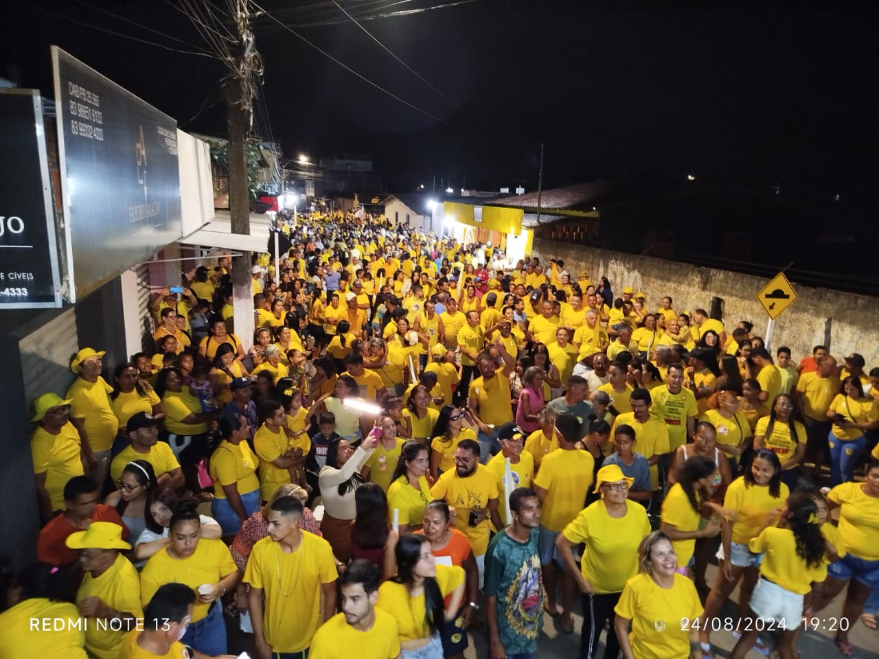 Uma verdadeira multidão vestida de amarelo foi as ruas na noite deste sábado (24) e surpreendeu o candidato a prefeito de Alhandra Elivaldo Firmino PSB durante a inauguração do seu comitê de campanha em Mata Redonda.