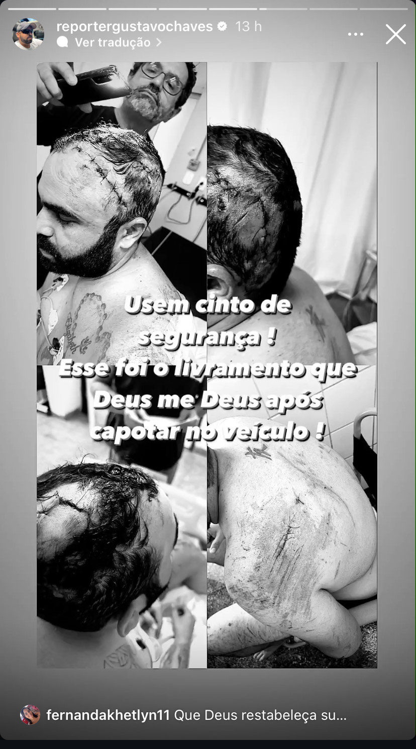 Repórter Gustavo Chaves sofre grave acidente no Sertão da PB: “Outra chance de viver”; assista 9 out 2024 - Notícias O repórter Gustavo Chaves, bastante conhecido na Paraíba, sofreu um grave acidente de carro no início deste mês. De acordo com as informações o comunicador foi vítima de um capotamento no dia 04, no sertão do estado Em suas redes sociais, Gustavo postou um vídeo onde mostra como ficou sua situação e diz ter ganhado de Deus outra chance de viver. Assista Notícias relacionadas:Vai faltar água em Cabedelo, Conde e 27 bairros de João Pessoa nesta terça-feira; saiba quaisJuiz determina que Hytalo Santos e marido devem ser transferidos de São Paulo à Paraíba o mais rápid...Câmara aprova reajuste salarial de 3% para Guarda Civil Metropolitana de João Pessoa