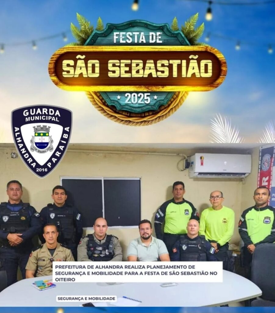 Forças de segurança se reúnem para planejamento do esquema da festa de São Sebastião em Alhandra 11 jan 2025 - Alhandra / Destaque Na manha desta sexta-feira (10), representantes da policia Militar, da Guarda Municipal e SMTRANS de Alhandra reuniram-se para realizar o planejamento da tradicional festa de São Sebastião. O evento será realizado entre os dias 17 e 19 de Janeiro de 2025 e contará com apresentações musicais, culturais e tradicionais. Com isso haverá um aumento no efetivo policial com varias modalidades de policiamento, além do trabalho integrado com as forças de segurança Municipal de Alhandra Notícias relacionadas:MP recomenda demissão de vigilantes e cita uso de viaturas ‘para passear’ em CaaporãPetrobras reduz preço da gasolina em 4,9% a partir de terça-feiraBranco Mendes celebra mais uma conquista do seu mandato para recuperar a PB-008 até a PB-044, benefi...